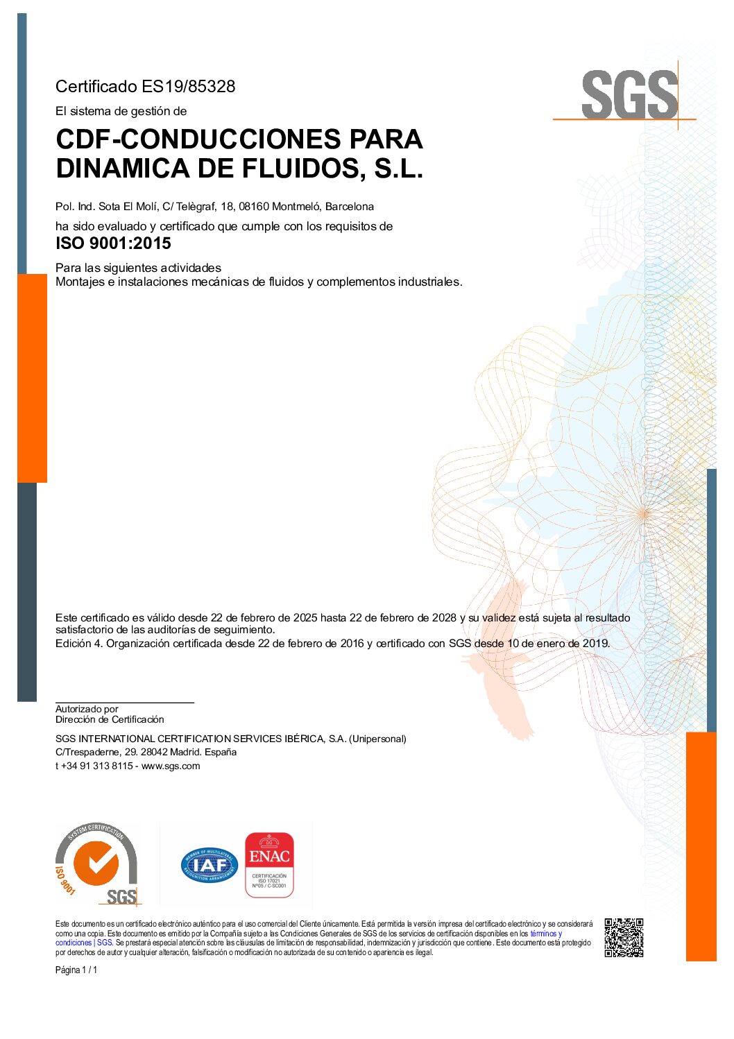 CDF, Conducciones para Dinámica de Fluidos, S.L., de acuerdo con la legislación vigente, y con el tipo de instalaciones en las que está habilitada para actuar, tiene contratado los servicios de R.C. con la compañía REALE Seguros Generales, S.A.